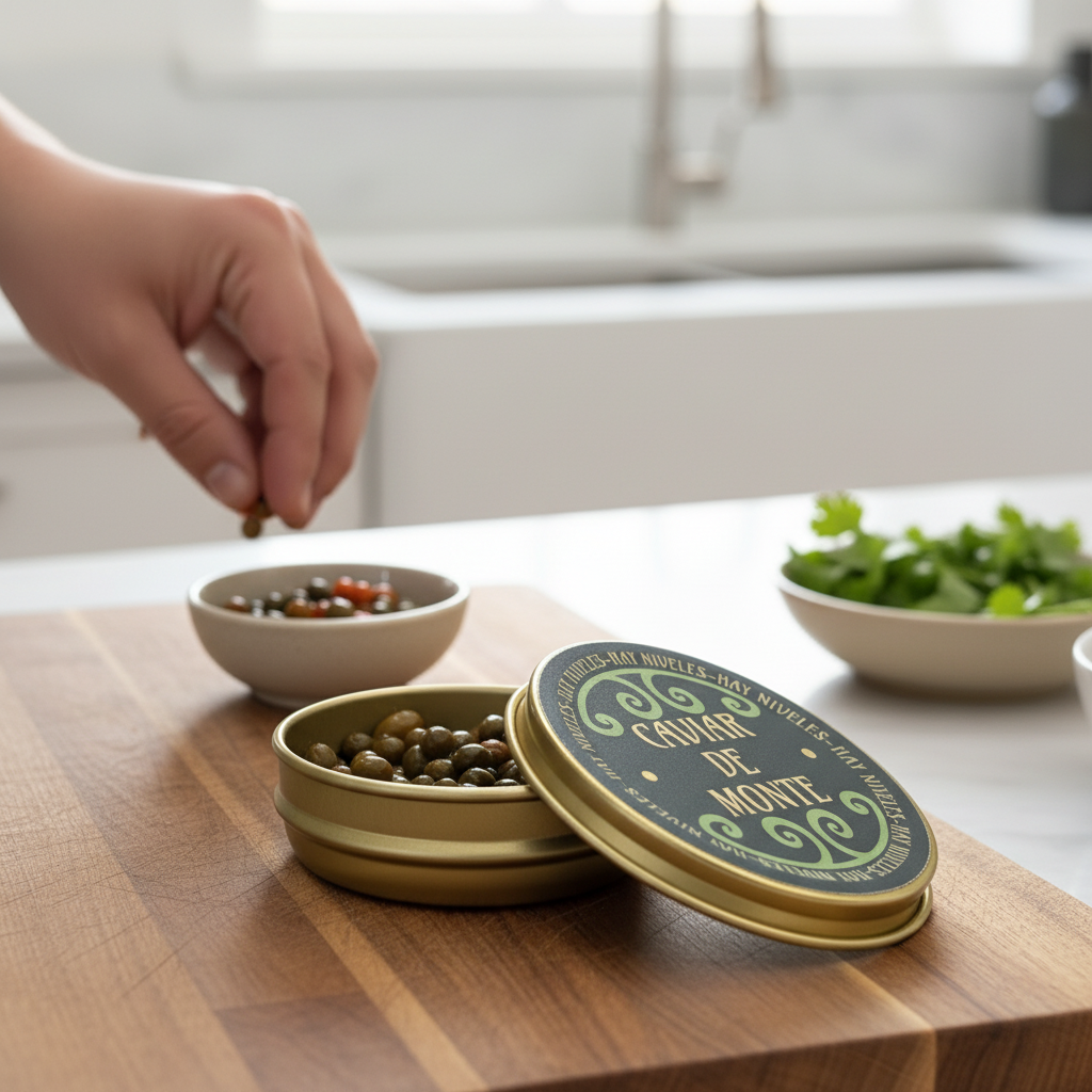 A true tribute to our cuisine and the King of Chiles, the Monte chile. This is preserved wild Piquin chile with extra virgin olive oil, packaged in a caviar tin so you can take it anywhere! Delicious!